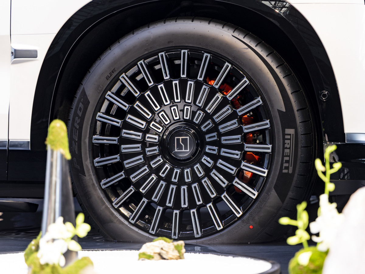 - Центральна консоль – з OLED-дисплеєм 6K, кришталевим перемикачем режимів, дерев’яними вставками та двома бездротовими зарядками;