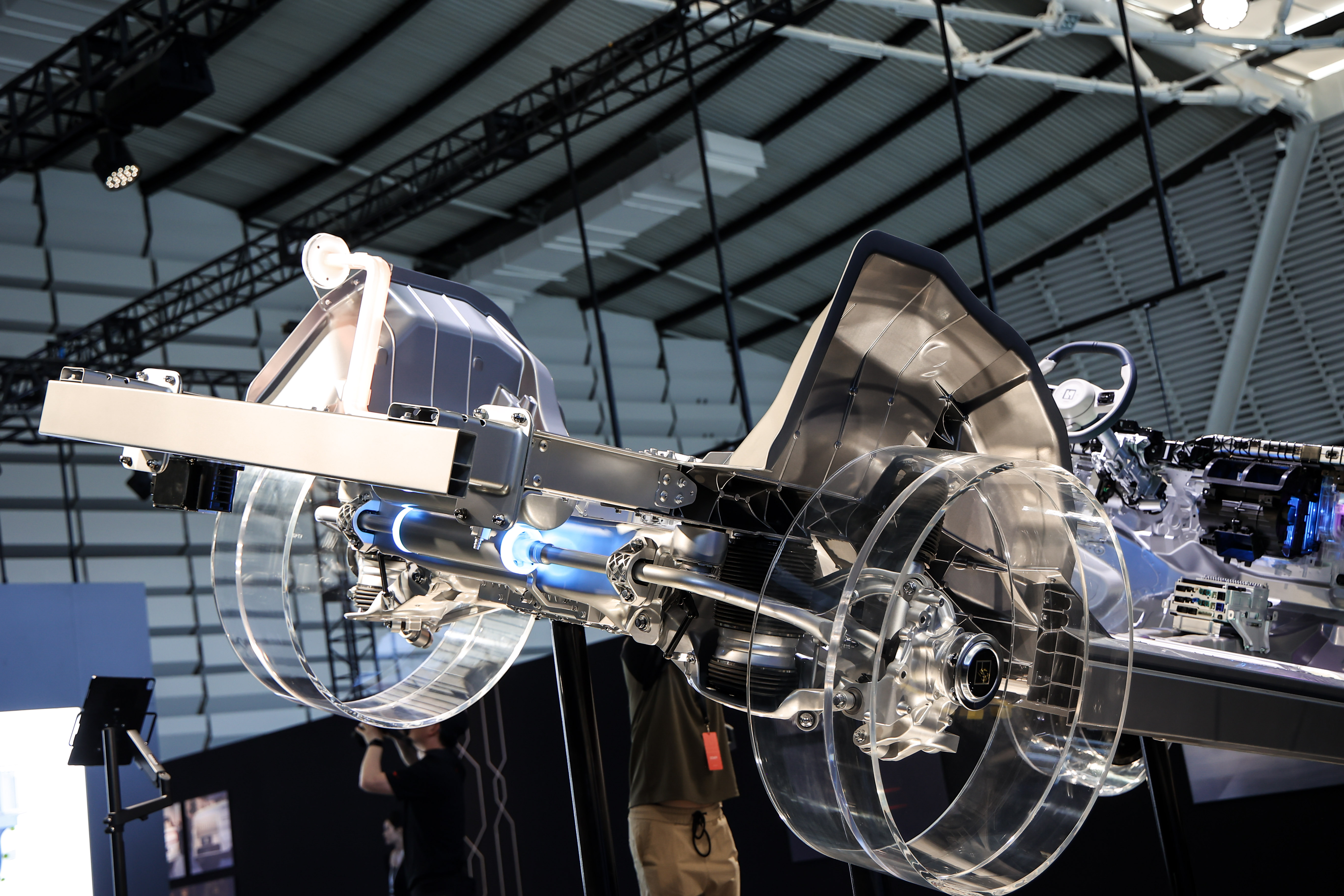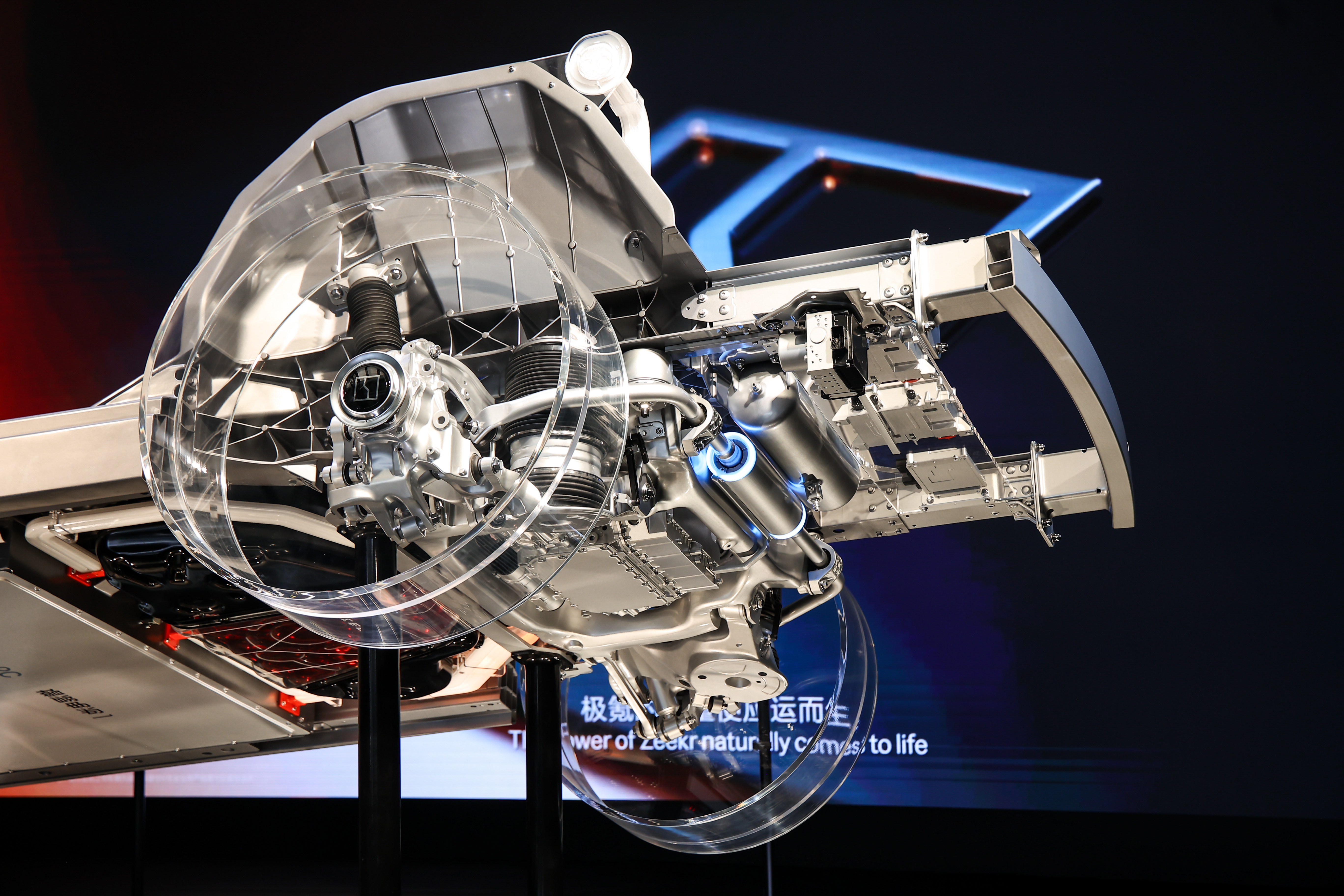 Радіус повороту – 6 м, як у Zeekr 001, а поведінка на дорозі – як у середнього седана. Жорсткість кузова – 41 600 Н·м/градус, що забезпечує стабільність навіть на високій швидкості.